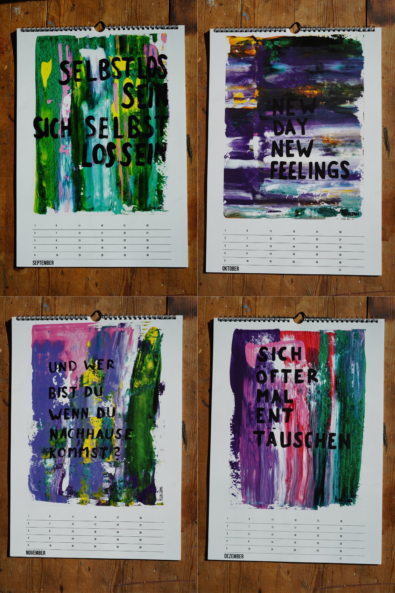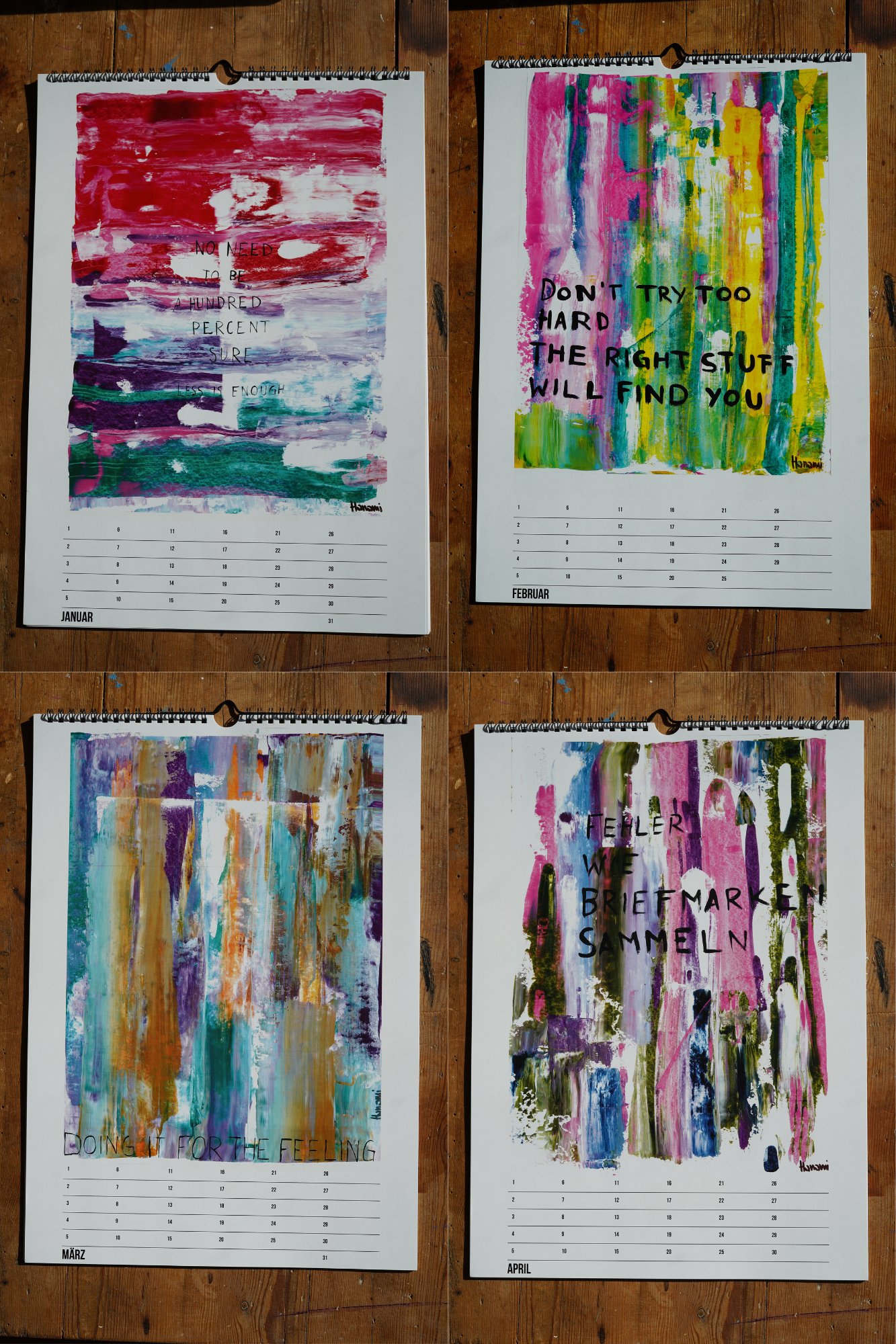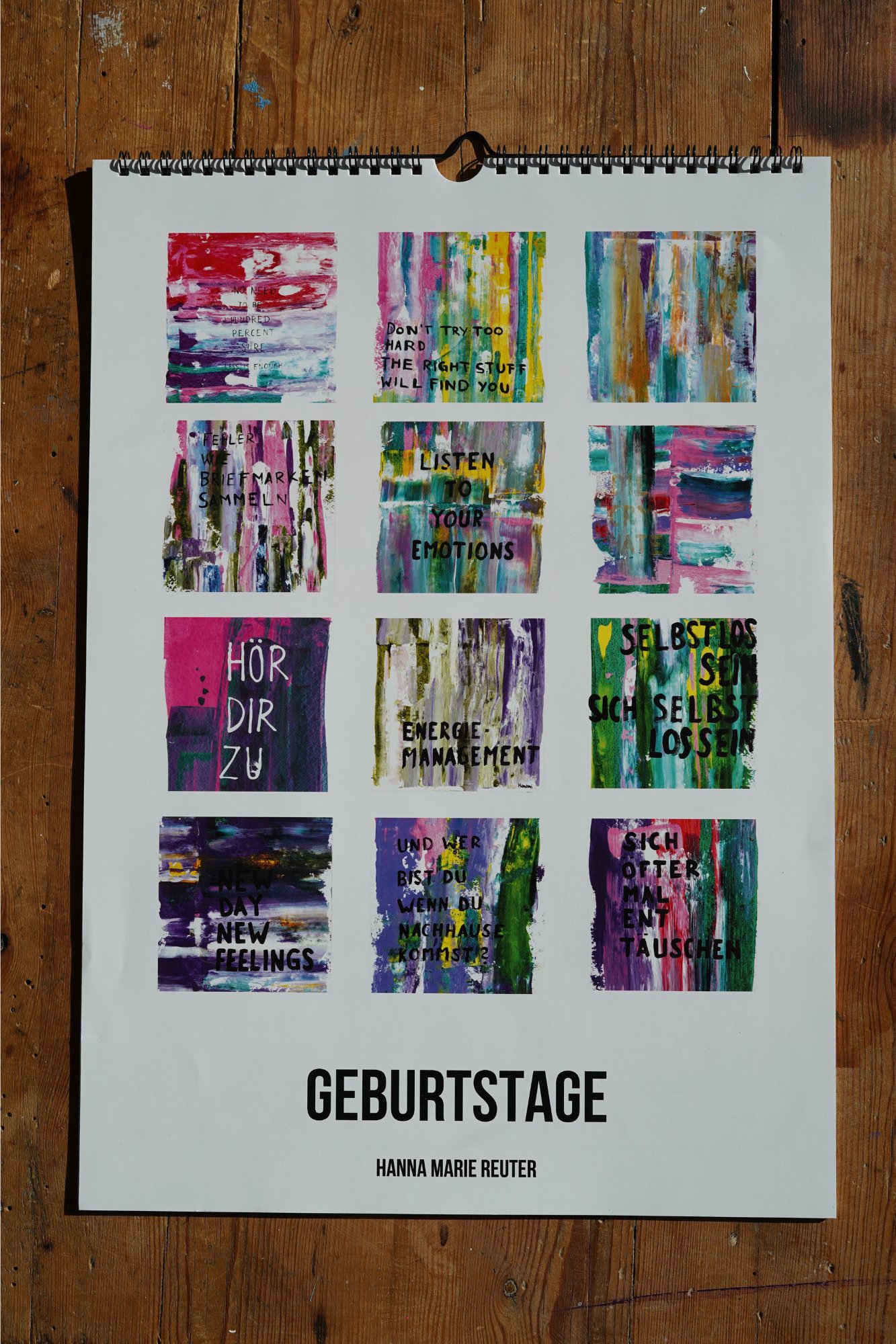 12 große! A3 Bilder mit Monatskalender und einem Deckblatt.